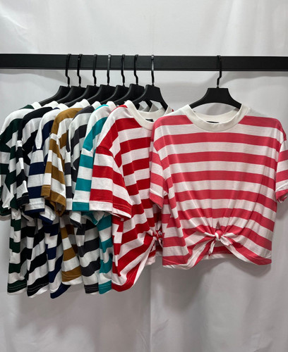 تیشرت زنانه گره ای Bereshka مدل راه راه از جنس نخ پنبه
